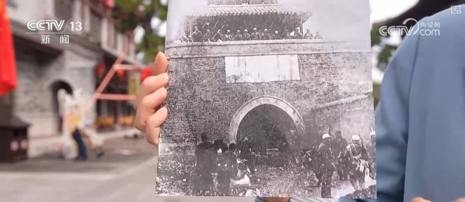 莒國古城裏到處都是喜氣洋洋、熱鬧非凡。這張特殊的照片取景地就是在這裏,這是當年莒城解放戰後的情形,戰士們登上了城樓,定格下了這份來之不易的勝利。