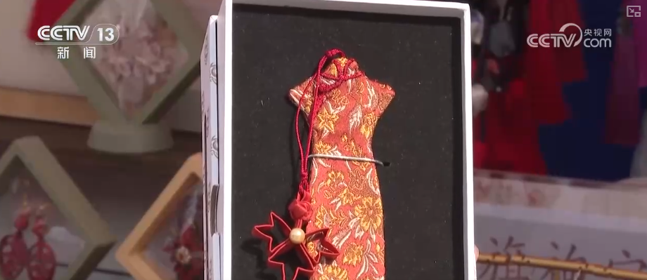 在非遺八大集市上,有許多精緻的小物件,比如這枚小書籤,別看它小,可是凝結了三項非遺技藝,包括京式旗袍傳統制作技藝、京繡技藝,以及盤扣製作技藝,亮點多多,十分的精緻。