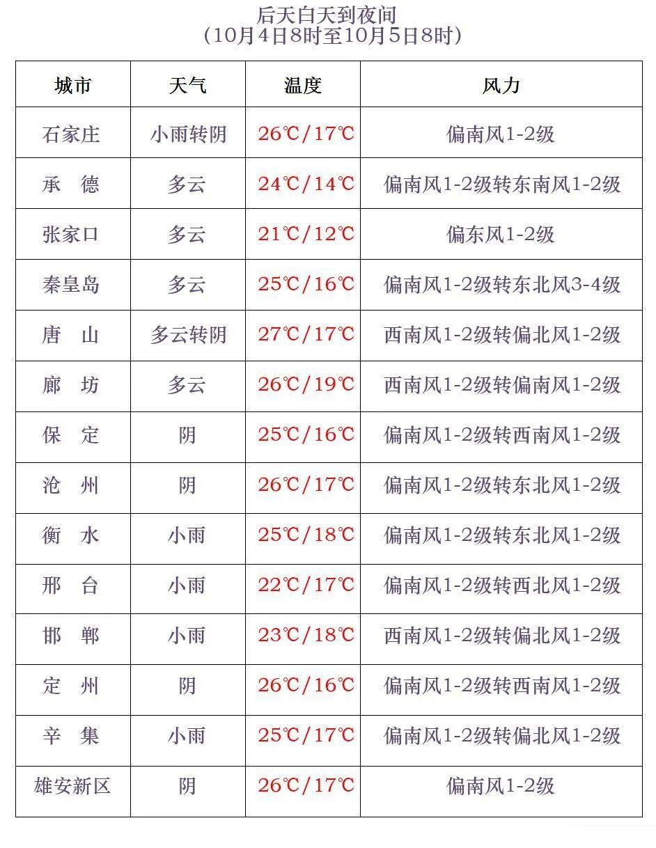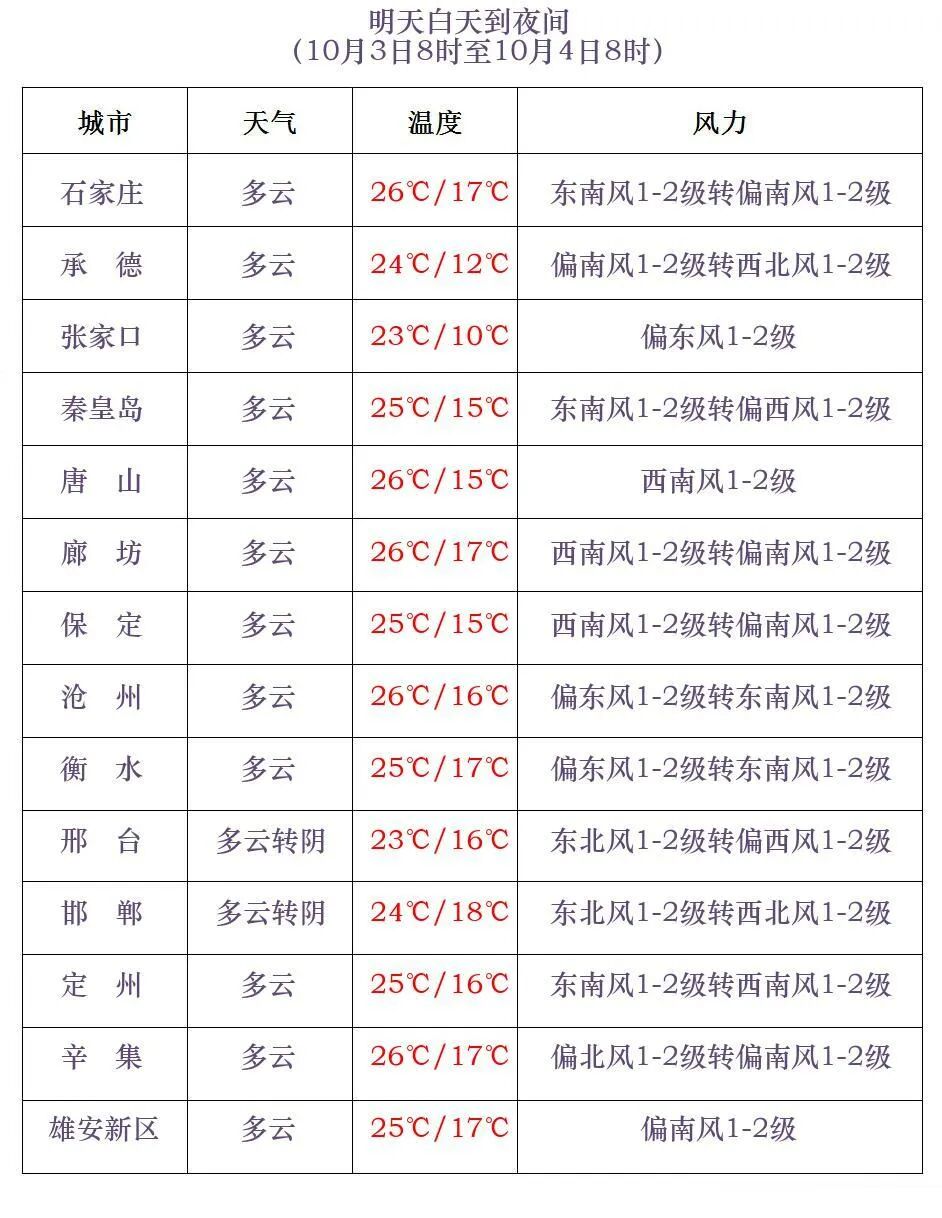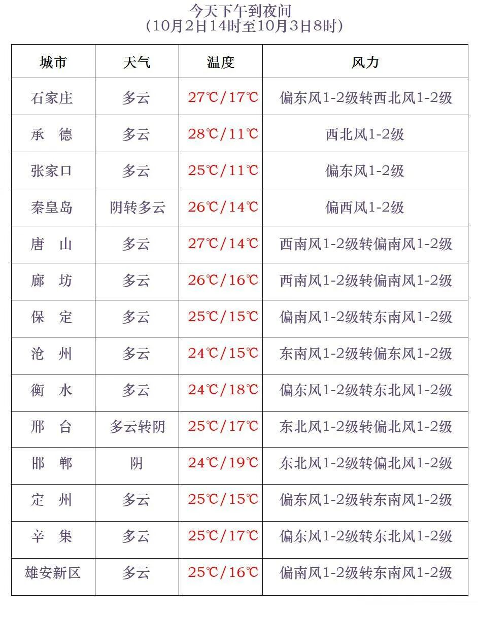 河北省氣象台2025年10月2日11時發佈天氣預報: