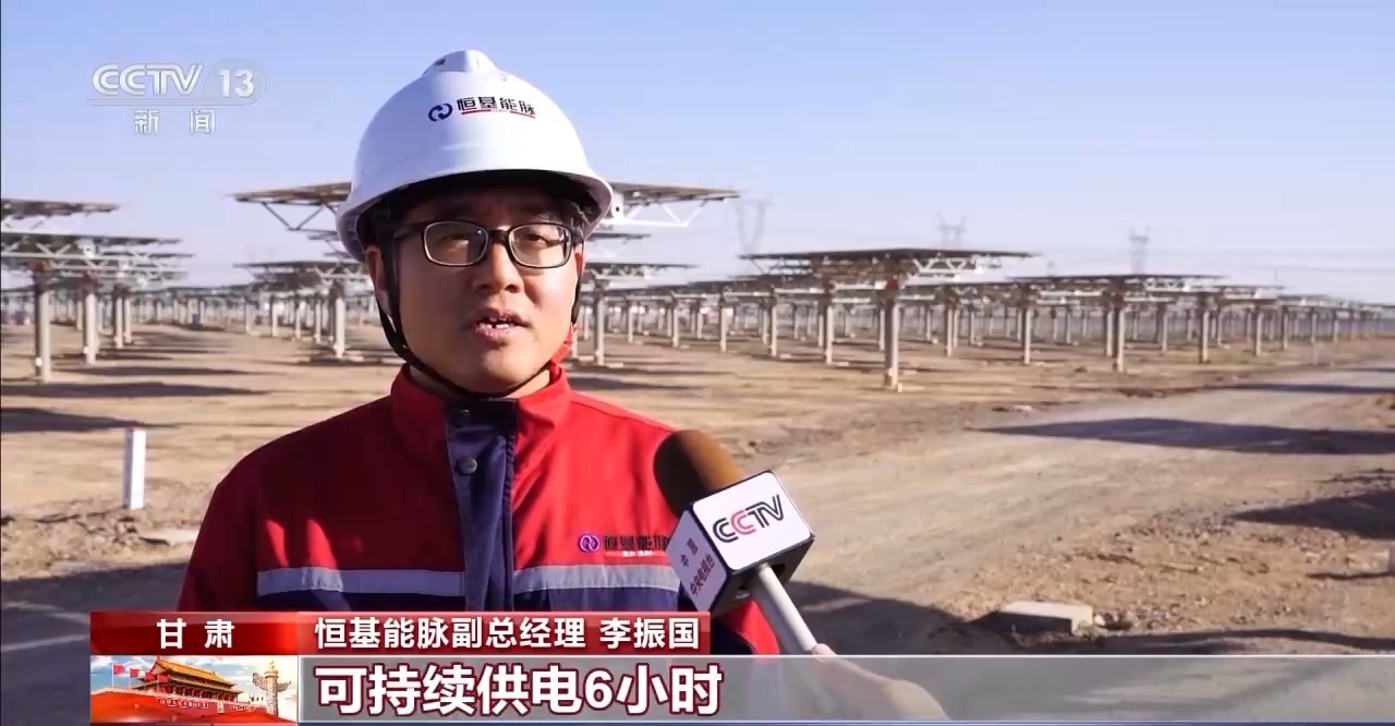 *恆基能脈副總經理 李振國:*這套熔鹽儲熱系統,最大儲熱量相當於60萬度電,可持續供電6小時。它不僅能用太陽光直接加熱,還能將風電、光伏產生的富餘電能轉化為熱能儲存起來。