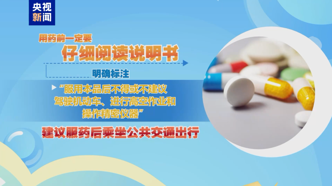 有些藥物會影響駕駛安全,用藥前一定要仔細閲讀説明書,如果説明書標註了服用本品後,不得或不建議駕駛機動車、進行高空作業和操作精密儀器等字樣,建議服藥後乘坐公共交通出行。