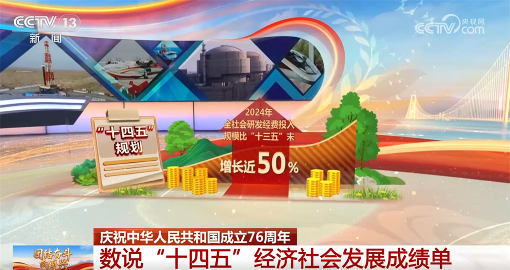 “十四五”規劃把創新提到前所未有的重要位置,我國研發投入再創新高,2024年全社會研發經費投入規模比“十三五”末增長近50%,增量達到1.2萬億元。我們站上一個又一個“大國重器”的創新制高點,用科技創新帶動產業不斷向中高端轉型升級,多個領域加快從量變到質變、從中低端到中高端、從追趕者到領跑者轉變。