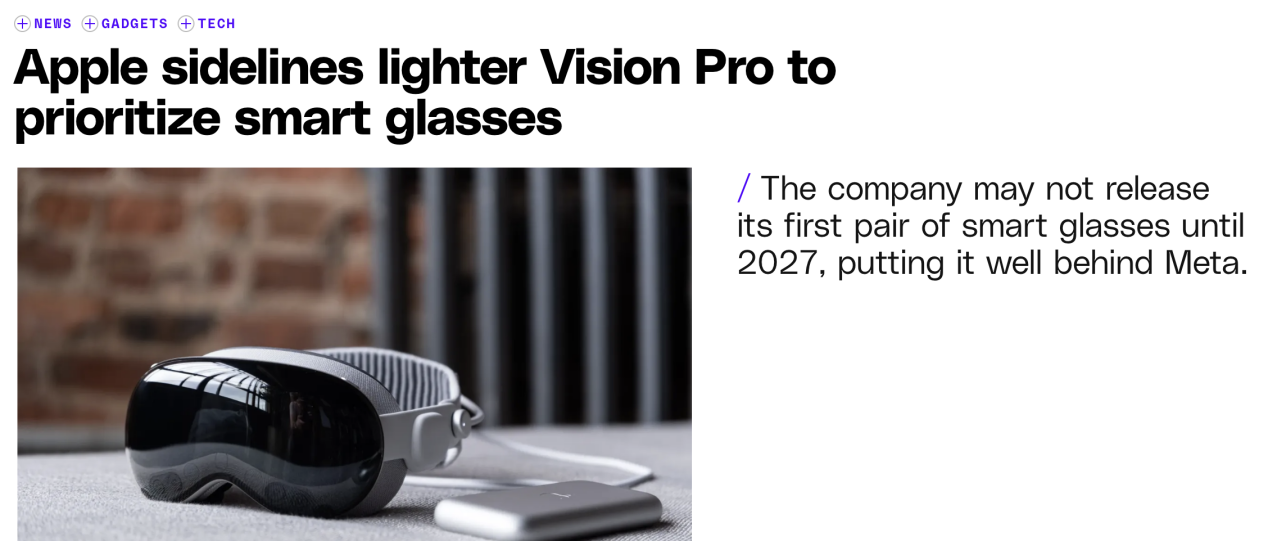 蘋果叫停輕量化Vision Pro,押注2027年智能眼鏡對標Meta雷朋生態