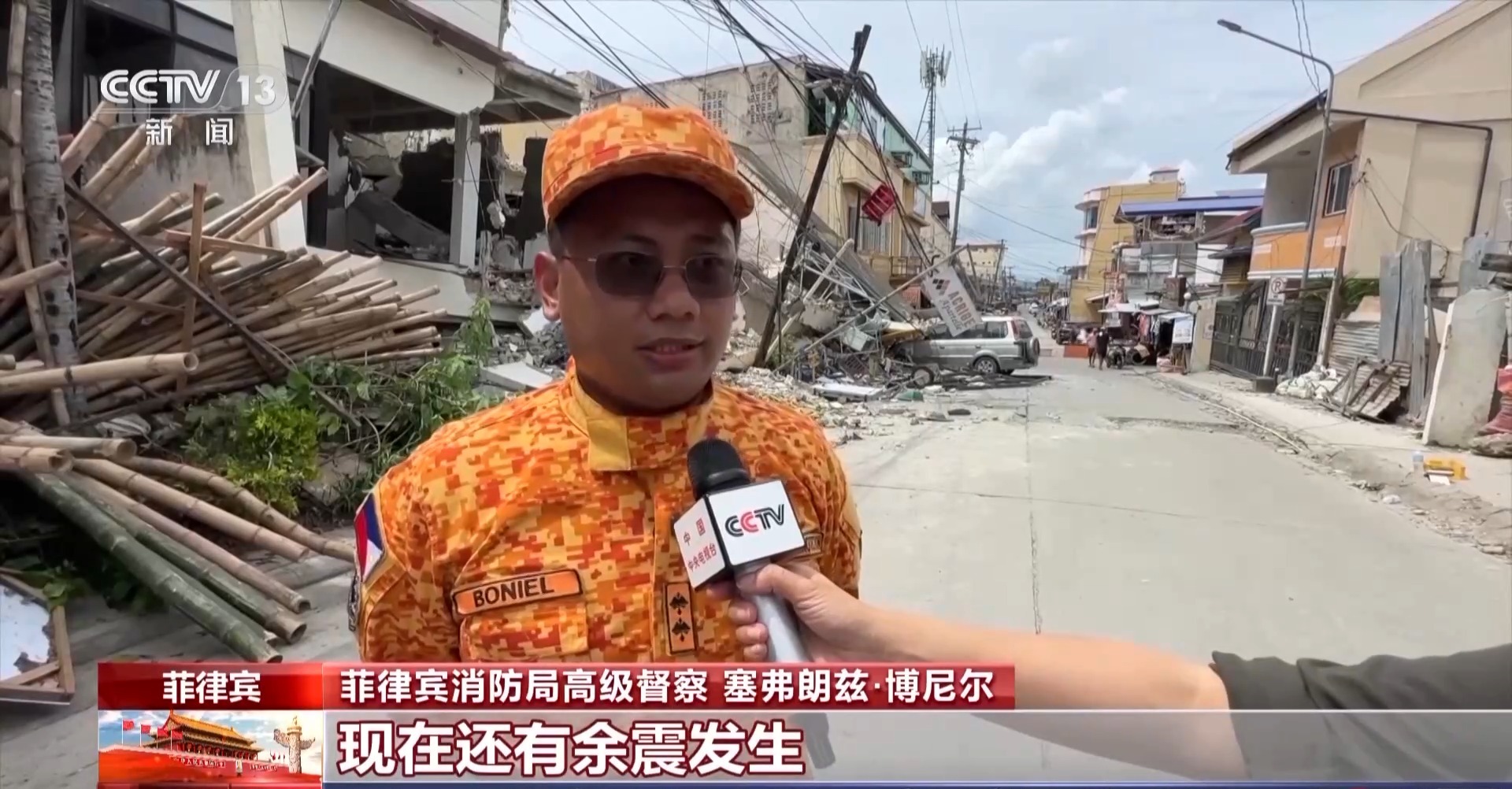 *菲律賓消防局高級督察 塞弗朗茲·博尼爾:*現在還有餘震發生,有時候震感強烈,所以我們消防局就在這裏確保安全。告訴人們這裏還是很危險,特別是那些店鋪的店主,我們理解他們想要取回財物,但我們還是提醒他們注意安全,也提醒路過的民眾要小心。