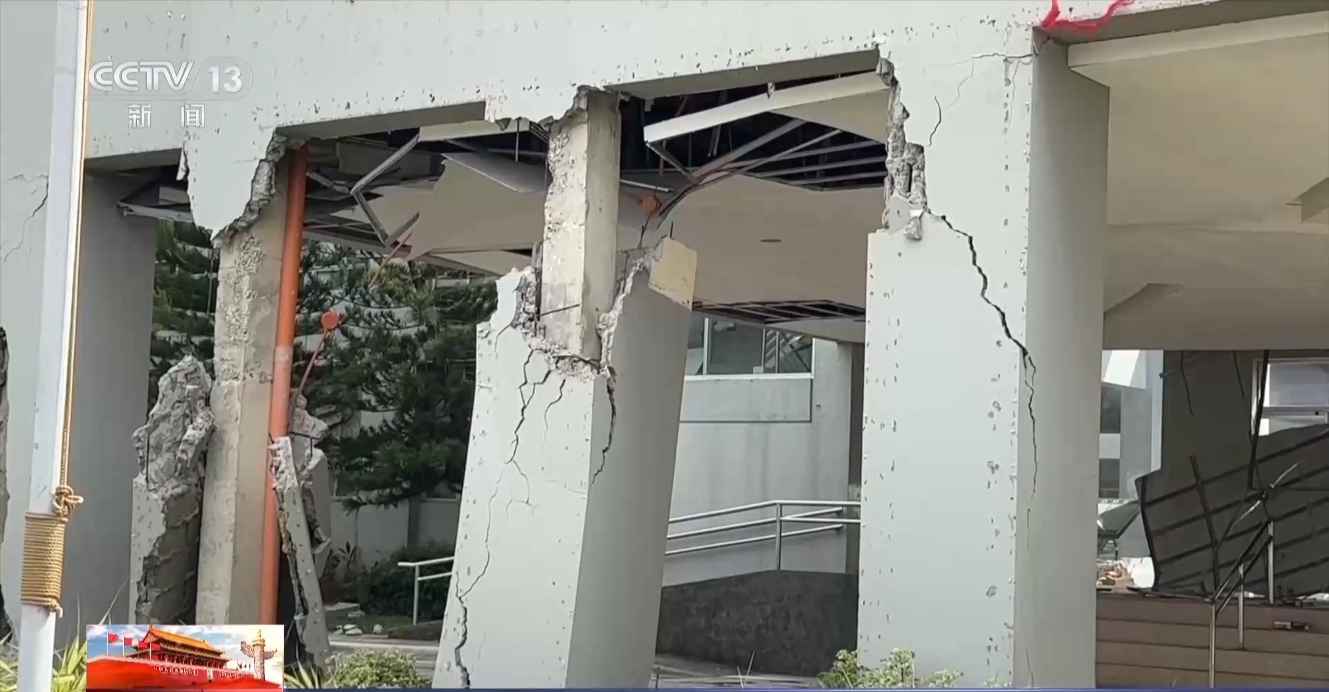 *總枱記者 黃錚錚:*我們現在來到了博戈市的一個商業街區。大家可以看到我身後的建築在地震當中已經完全倒塌了,這裏有酒店有商鋪。我們面前的路面也處於開裂的狀態,倒塌下來的房屋還砸中了路過的車輛。