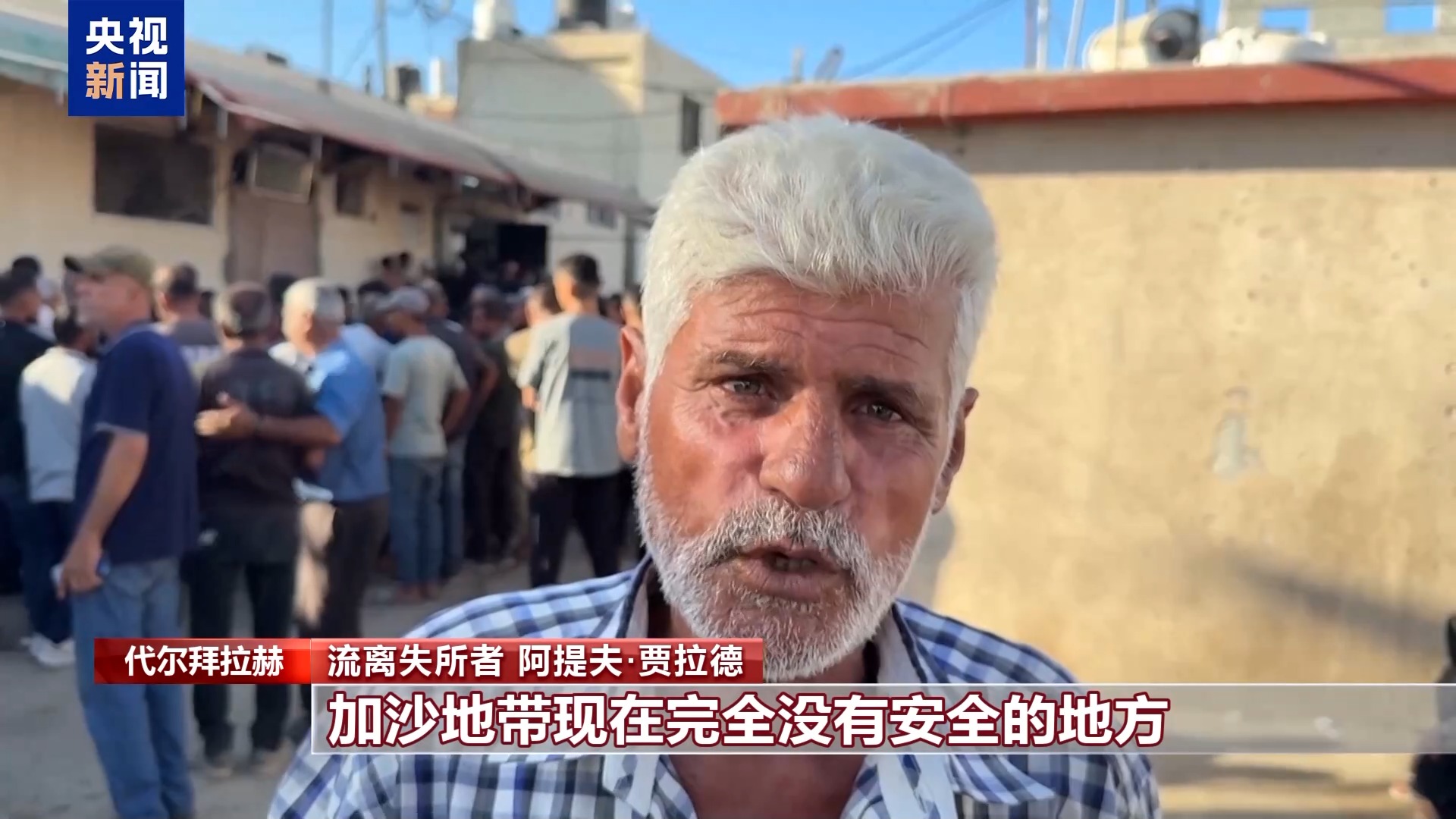 *代爾拜拉赫的流離失所者 阿提夫·賈拉德:*由於拜特拉希亞被完全摧毀,我們來到了這裏。以軍通知讓我們前往安全地方,特別是代爾拜拉赫。但很不幸,以色列的戰爭機器只會轟炸無辜的生命。這些人沒有任何武器,我不得不非常明確地説,加沙地帶現在完全沒有安全的地方。