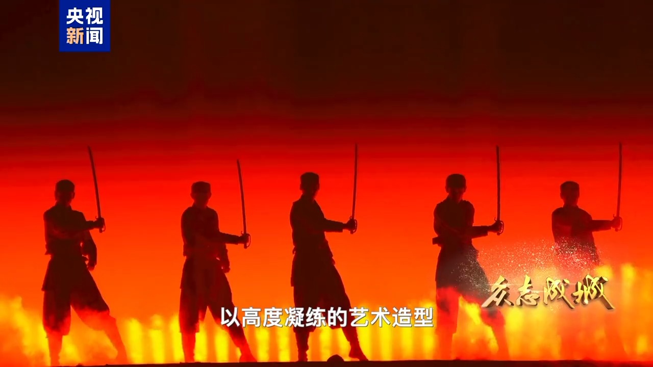 這段極富視覺張力的騎兵連舞,以高度凝練的藝術造型,在遍地烽火中展現出中華民族的戰鬥形象,令人耳目一新。鐵道游擊隊舞充滿巧思與設計,勾勒出中華兒女的機智抗爭身影。氣勢迸發的大刀舞,盡顯血戰到底的無畏氣魄。整台晚會的舞美造型簡潔而富有現代感,為了增強節目的情景感,中央廣播電視總枱創作團隊讓大量珍貴視頻史料,經過AI修復等手段,有機融入舞台表演之中。