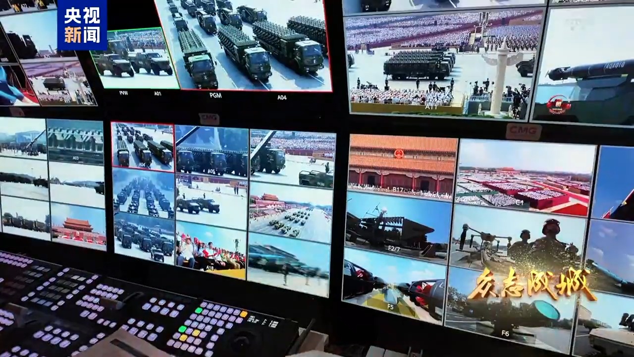 導演組經過反覆實地踏勘,為紀念大會直播設置了一個總導演系統和七個分系統,直播機位超過170個,更首次規模化搭建了國產8K超高清轉播系統。自2025年6月起,轉播團隊迎着驕陽,進行一次又一次的模擬演練。