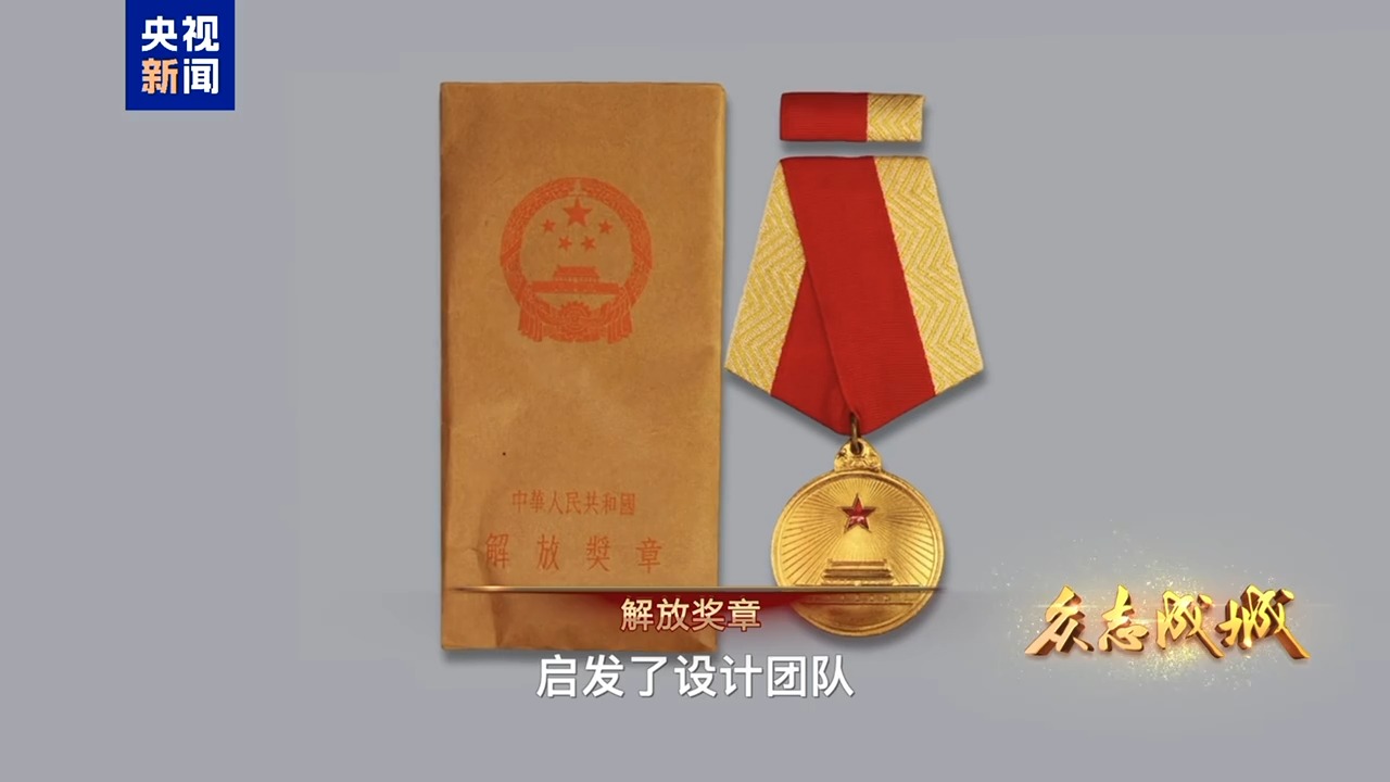 中央美術學院設計學院副教授陳蔚平介紹,一個是獨立自由獎章,一個是解放獎章,一枚是紅金色,一個是綠金色,特別漂亮,就想到紅色、綠色和金色作為這一次顏色的基本色。
