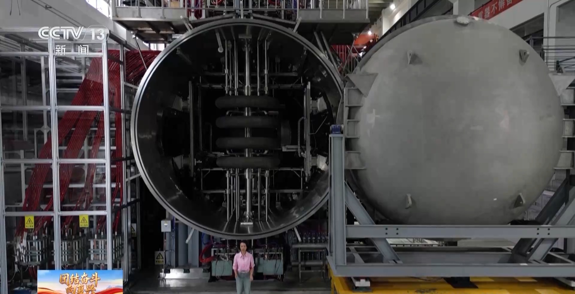 這個直徑5米、有着三層樓高的銀色大傢伙,被科學家親切地叫作“巨型微波爐”,*它是我國自主研製的大型真空模擬艙,在全球首次精準復現了三維地球磁層的等離子體環境。*平時温和的星雲、極光等等離子體,在遇到太陽風暴的時候,會變成億萬發“太空子彈”,嚴重威脅航天安全。如今,我國科學家已能在地面“再造”太陽風暴,揭開宇宙狂暴的奧秘。