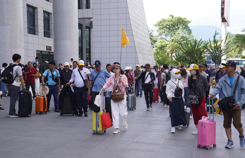 外國旅遊團經雲南省河口口岸入境。(7月10日攝)新華社發(梁志強攝)