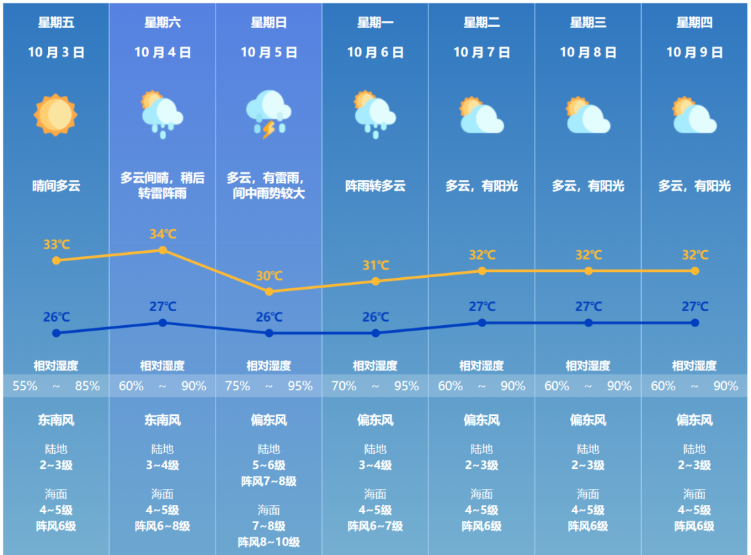 強化海上防風措施。根據通知,經綜合會商決定,珠江口以西(含珠海)海域於10月3日18時前落實防颱風“六個百分百”措施,所有海上作業漁船全部回港避風,所有漁排養殖和海洋牧場人員全部上岸避險,海上風電施工平台人員全部撤離,海釣船、潛水等休閒船艇和鄉鎮船艇等禁止出海;濱海景區、跨海航線根據情況適時關停。珠江口以東海域海上作業漁船密切關注颱風路徑變化,加強防風措施,做好隨時回撤準備。