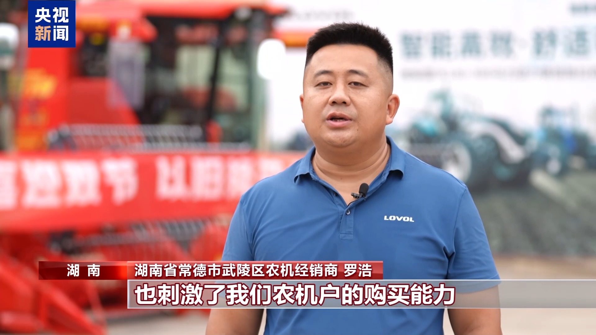 *湖南省常德市武陵區農機經銷商 羅浩:*以舊換新政策有效地促進了我們農機的流通,也刺激了農機户的購買能力。相比於往年,銷售提升了30%。