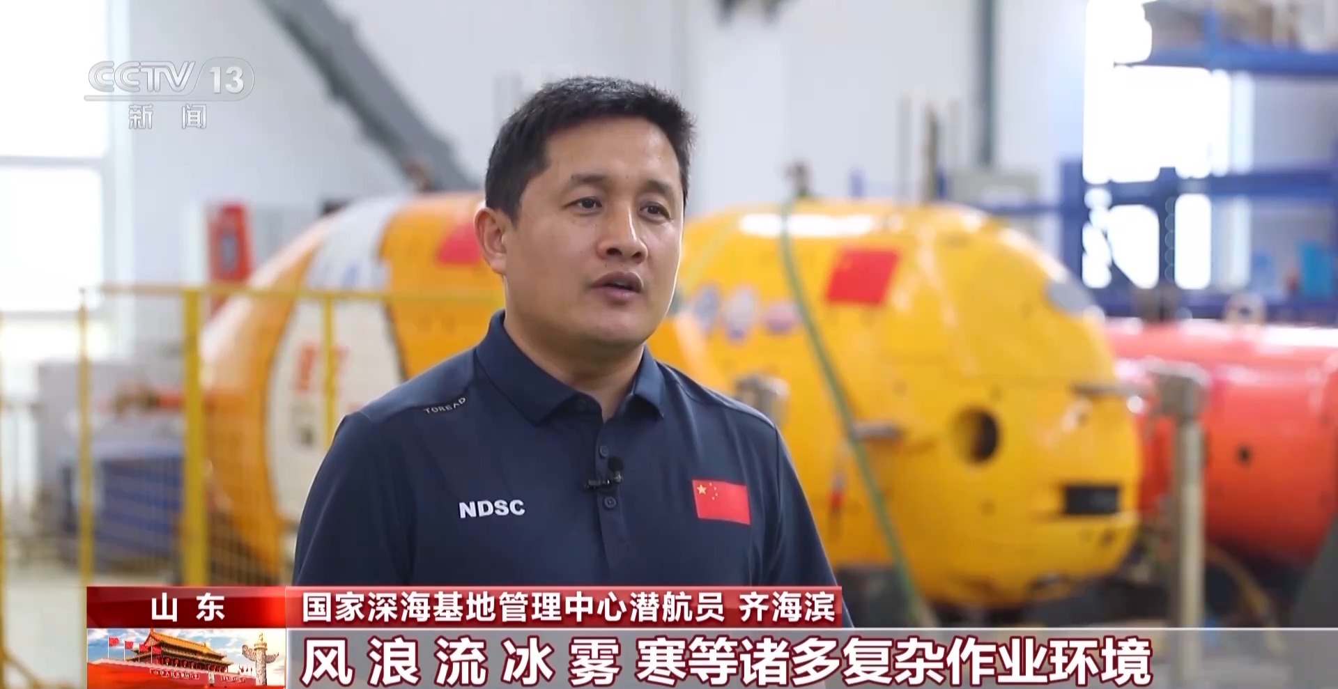*國家深海基地管理中心潛航員 齊海濱:*在北極我們要面臨風、浪、流、冰、霧、寒等諸多複雜作業環境,尤其是在大面積冰面區域的作業,我們要選擇合適的下潛點,綜合考慮浮冰的漂浮情況,這些都是和其他海區深潛是不同的。