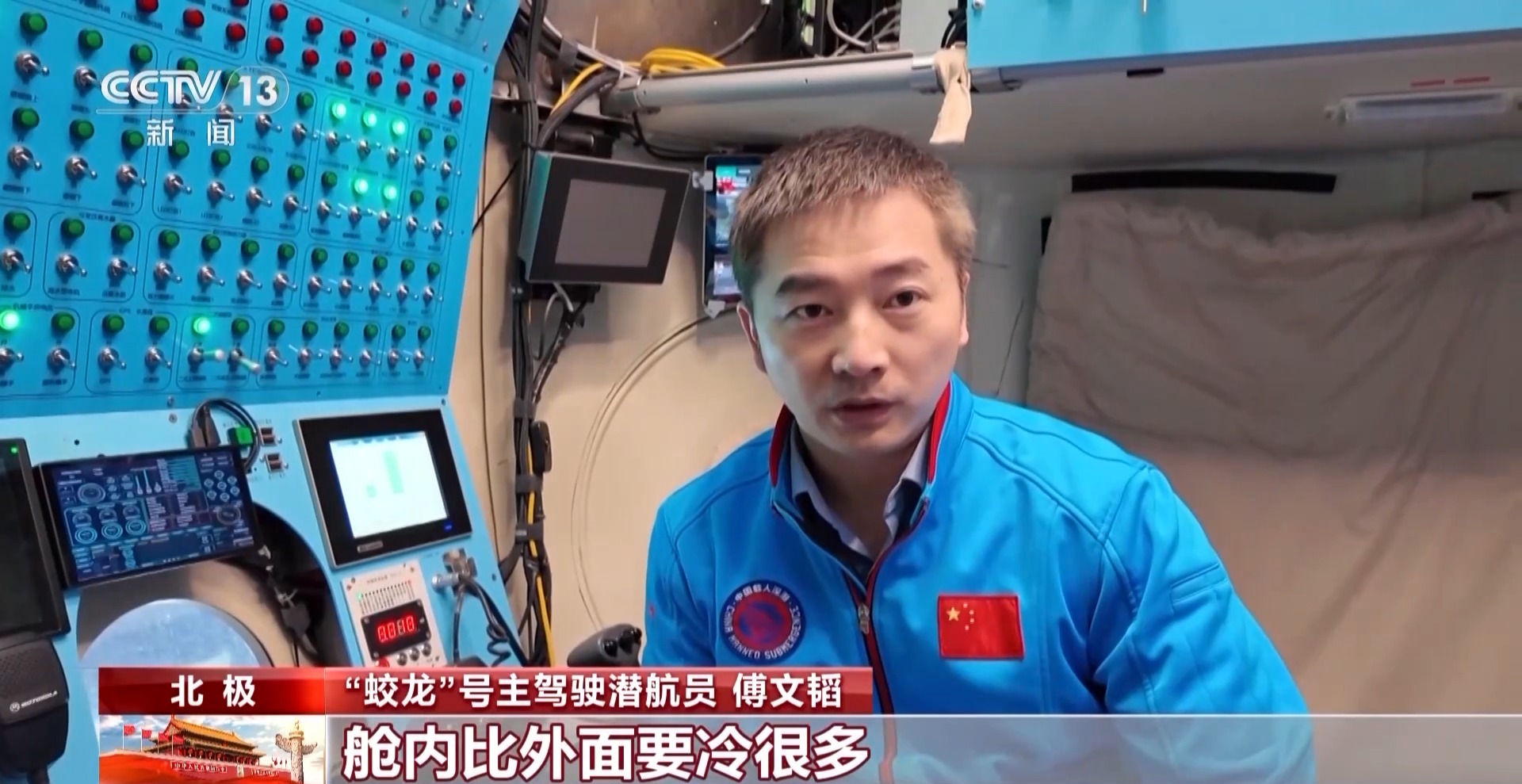 *“蛟龍”號主駕駛潛航員 傅文韜:*我們在別的地方下潛的話,艙內比外面的話要冷很多,但是北極不一樣,我們進來的時候穿多少,到底下也是穿多少。也是會做很多準備工作,把每個潛次的任務完成好。