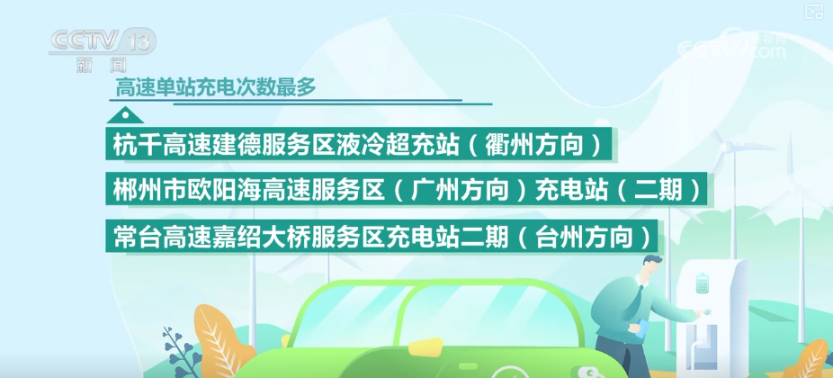 高速單站充電次數最多的是杭千高速建德服務區液冷超充站(衢州方向)、郴州市歐陽海高速服務區(廣州方向)充電站(二期)、常台高速嘉紹大橋服務區充電站二期(台州方向)。