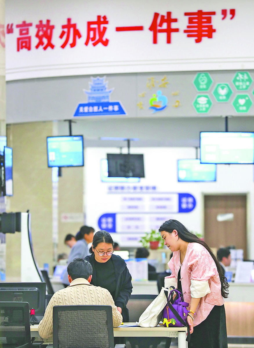 江蘇淮安經濟技術開發區政務服務中心,市民在辦理業務。趙啓瑞攝(影像中國)