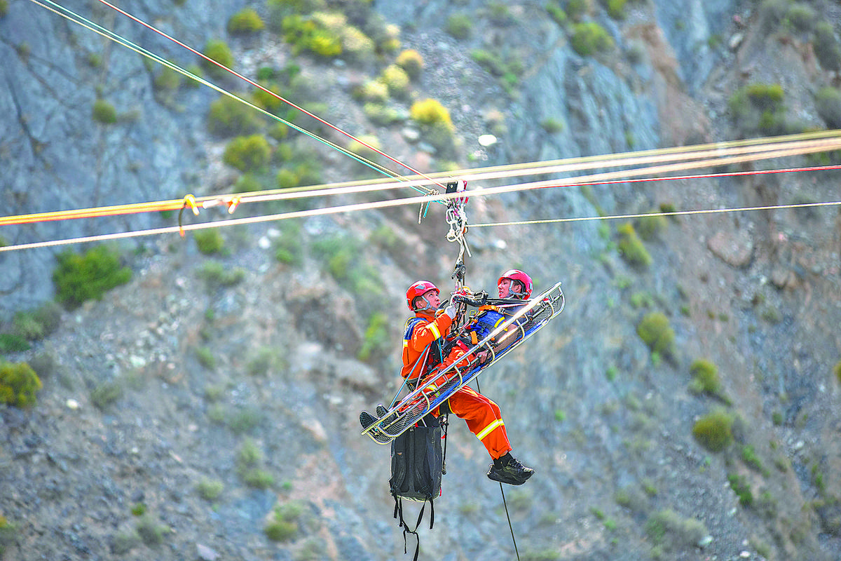 甘肅森林消防總隊張掖支隊組織開展高空繩索救援實戰化訓練。景旭鵬攝(影像中國)