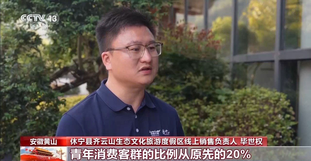 *黃山市休寧縣齊雲山文化旅遊度假區線上銷售負責人 畢世權:*從數據來看,青年消費客羣的比例從原先的20%,提升到現在45%左右,同時也刺激了我們景區的二次消費和復購率,也提升了整體的口碑。