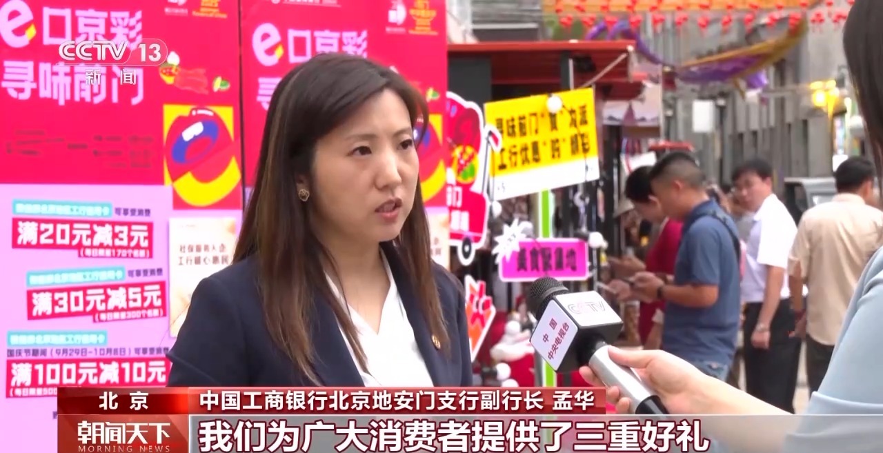 *中國工商銀行北京地安門支行副行長 孟華:*我們為廣大消費者提供了三重好禮,除了傳統的消費滿減活動以外,我們還疊加了數字人民幣的優惠支付,同時還設計了數字人民幣的打卡活動。
