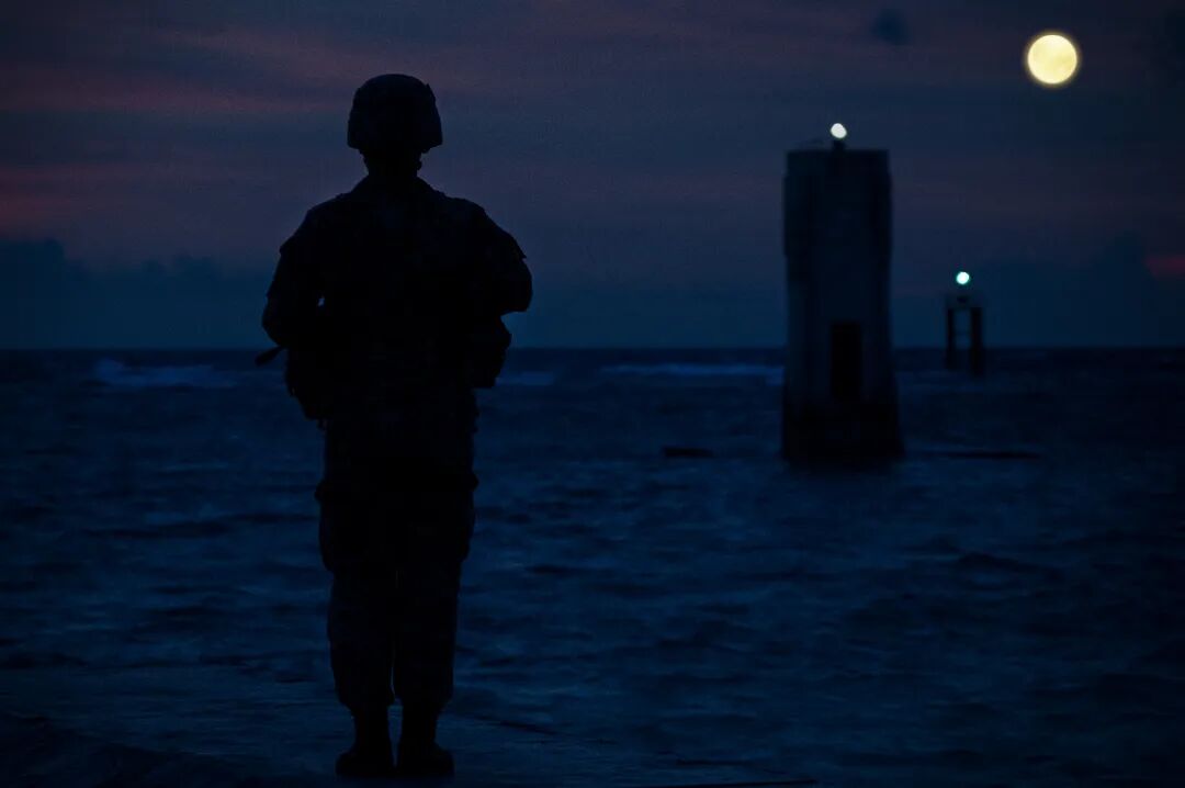 哨位上,他們緊握鋼槍,目光穿透夜幕瞭望遠方,將思念化作動力。海風為證,圓月作伴,以堅守詮釋忠誠,用青春守護家國安寧。(李高鵬、方智坤、李嘉誠)