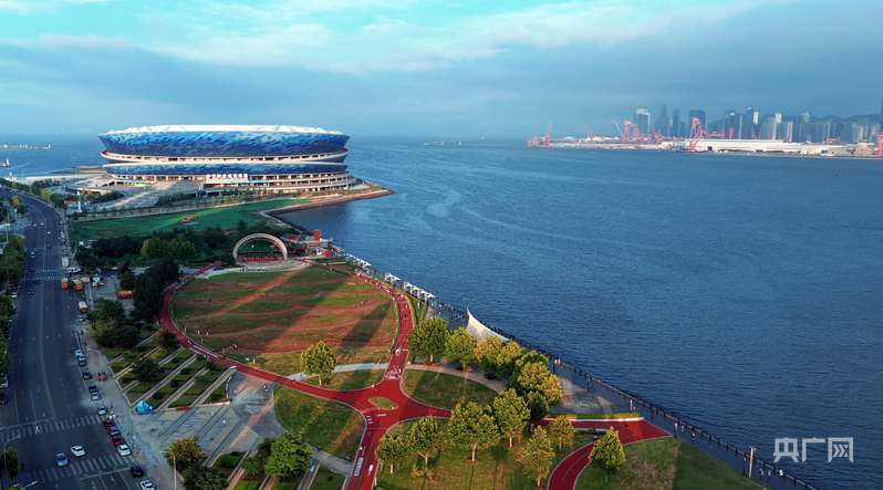 俯瞰梭魚灣濱海體育公園(央廣網發 甘井子區委宣傳部供圖)