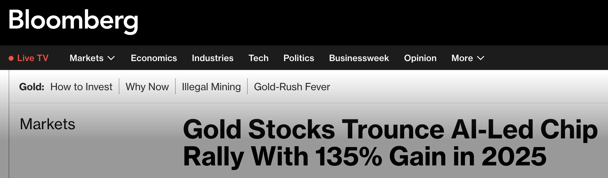 今年,黃金本身漲幅已超過45%,屢創新高。彭博社報道認為,除央行購金外,美聯儲降息、去美元化趨勢以及黃金ETF持倉增加也支撐了金價。在明晟公司黃金礦業股指數的權重股中,紐蒙特公司(Newmont Corp.)和伊格爾礦業公司(Agnico Eagle Mines Ltd.)在紐約上市的股票2025年已翻番有餘。與科技行業相比,貴金屬行業的估值問題遠沒有那麼令人擔憂。