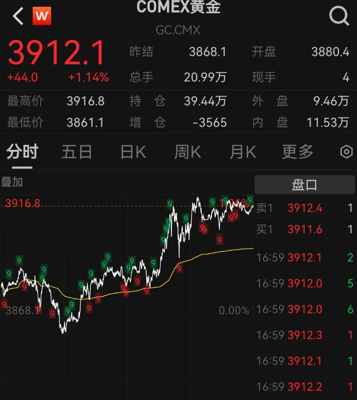 【環球網財經綜合報道】10月3日,黃金價格走強,有望連續第七週上漲,現貨黃金價格上漲0.5%,至每盎司3874.66美元,此前週四曾創下3896.49美元的歷史高位。本週迄今,黃金價格已累計上漲3.1%。COMEX黃金期貨衝破3900美元/盎司,漲幅超1%。