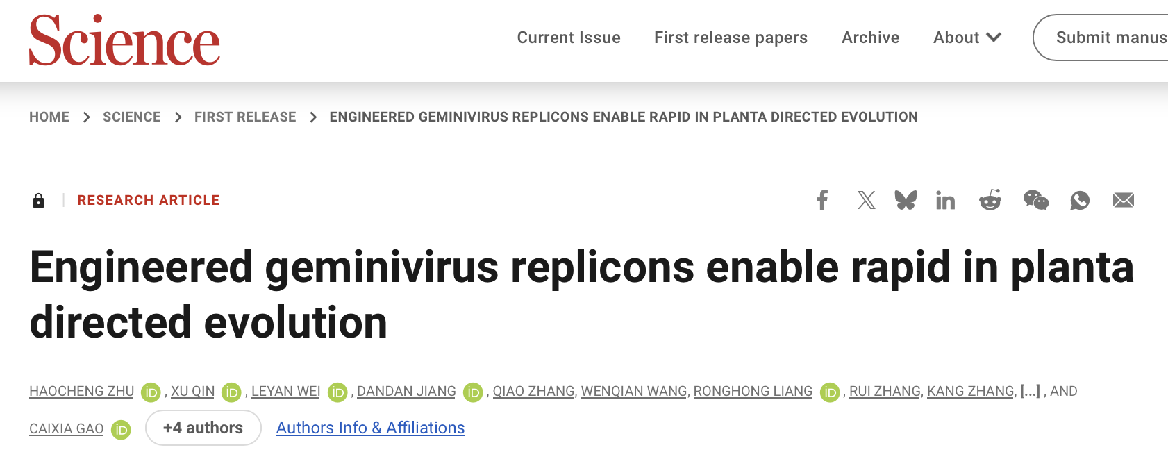 據悉,《科學》(Science)審稿人表示:“該研究的獨特之處在於建立了植物體內定向進化方法,填補了當前植物生物學領域的一項重要空白。該技術進步有望對這一快速發展的研究領域產生重大影響。”(青雲)