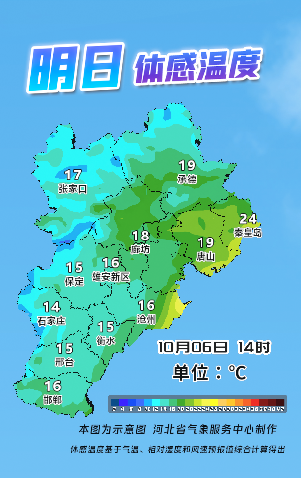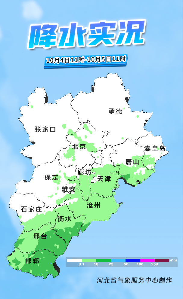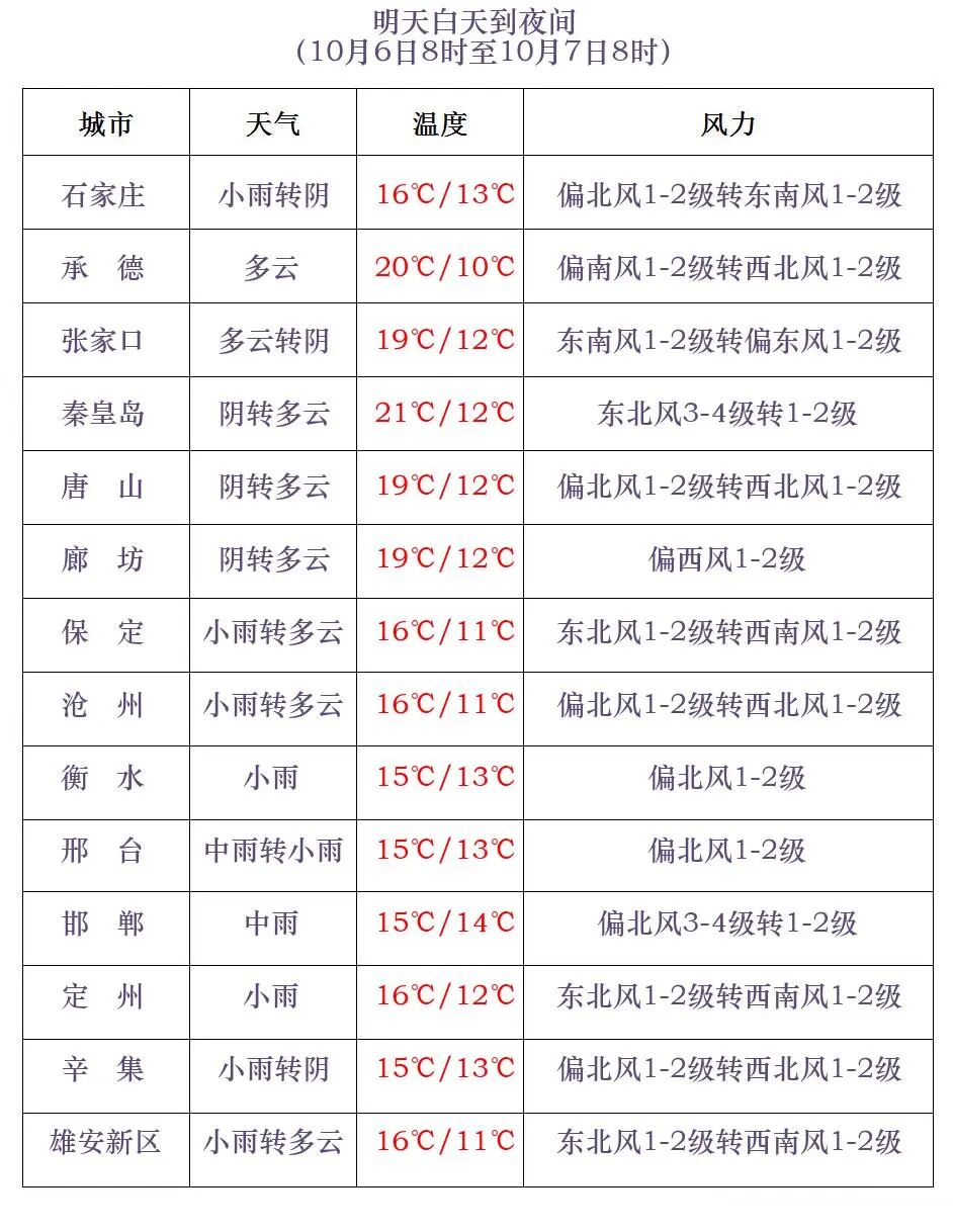 明天白天,張家口南部和保定、廊坊及以南地區陰有小雨,其中石家莊南部、衡水南部、邢台、邯鄲有中到大雨;其他地區多雲間陰。
