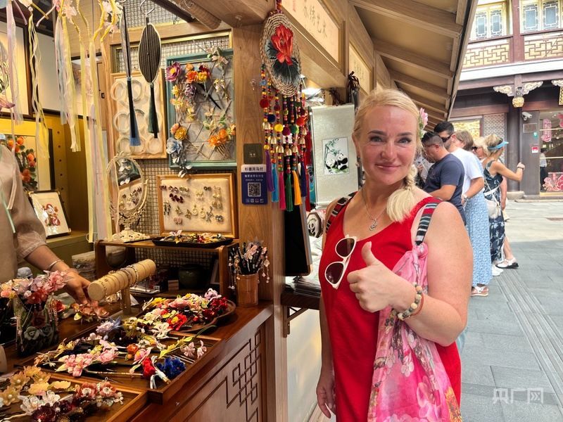 除了時尚消費的多元選擇,上海的特色消費更從“傳統好物”延伸至“科技潮品”,在滿足不同需求的同時,也向境外遊客傳遞着中國文化的温度與現代生活的便利。“我買了很多中國茶葉,買了玉手串。我還買了各種絲綢製品,有漂亮的裙子、絲巾,還有一條可以和媽媽一起使用的絲綢毯子。”俄羅斯遊客艾琳娜的行李箱裏,裝滿了頗具中國風的優質商品,這些都是她眼中“最有中國味道的伴手禮”。