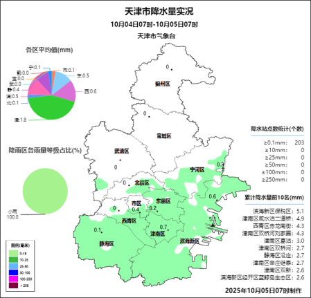 市區今天上午陰有小雨,下午陰有小到中雨,夜間陰有小雨,東北風3-4級陣風6級轉微風,今天白天最高氣温23℃,夜間最低氣温15℃,相對濕度65%到88%。截至06時今晨最低氣温實況:市區20.4℃;濱海新區20.1℃。