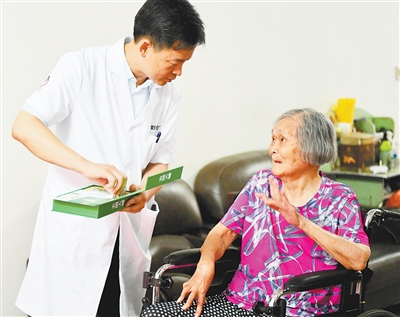 福建晉江市,村醫上門為行動不便的老人診療、送藥。當地不斷織密鄉村醫療保障體系,強化基層醫療服務。