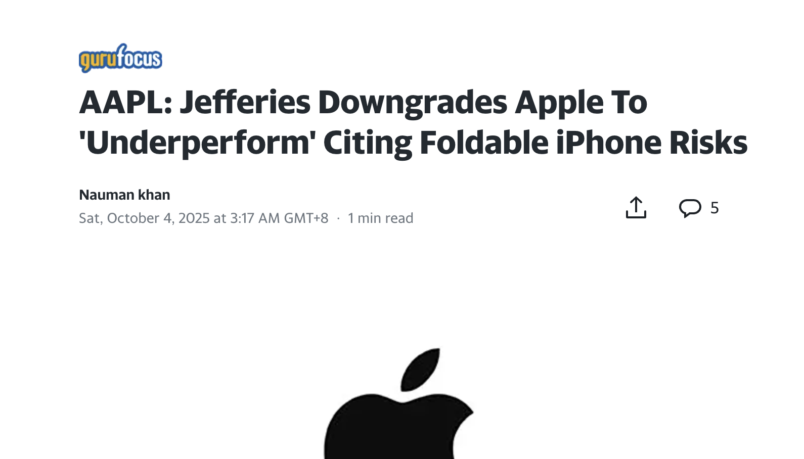 傑富瑞下調蘋果評級至“表現不佳”,指其可摺疊iPhone存在市場風險