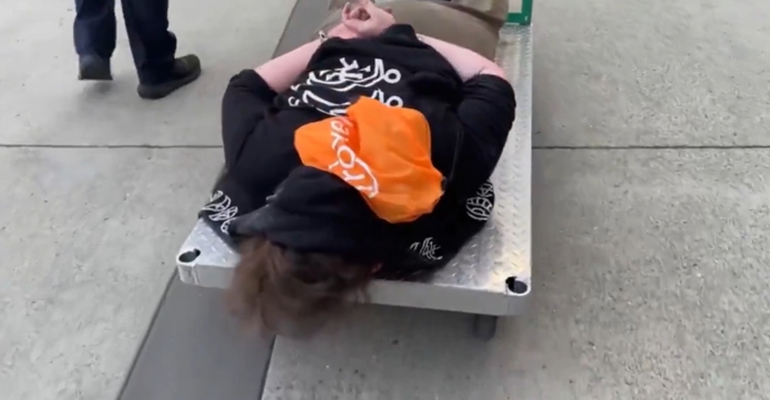 【環球網報道 記者 姜藹玲】據美國《紐約郵報》報道,美國移民與海關執法局(ICE)當地時間5日發佈視頻,畫面顯示在俄勒岡州波特蘭市,一名抗議者雙手被反銬在背後,俯卧在金屬平板推車上被運離現場。視頻配文,“拒絕走路?我們載你一程”。該視頻發佈後引發爭議。