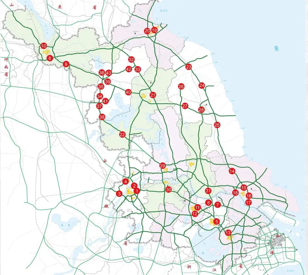 1.由北往南方向:南京二橋、滬蘇通大橋、蘇通大橋,G2京滬高速揚州段,G15瀋海高速鹽城段,G25長深高速常州段,S39江宜高速常州段,S49新揚高速盱眙段。