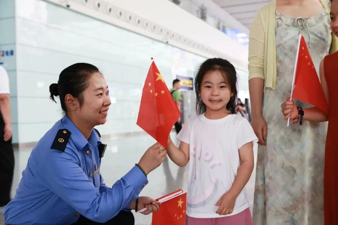 合肥站在候車廳內開展“我和國旗合影打卡”活動,吸引了不少旅客排隊拍照留念。與此同時,車站工作人員和志願者向候車旅客發放活動宣傳摺頁,鼓勵廣大旅客參與創作,讓旅途中的風景故事得以傳遞和分享。