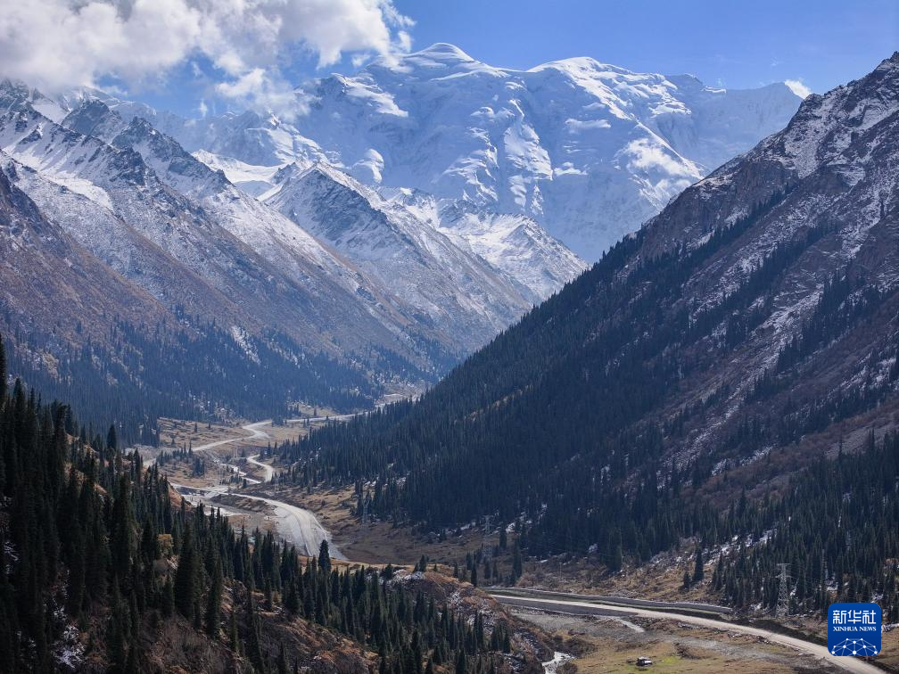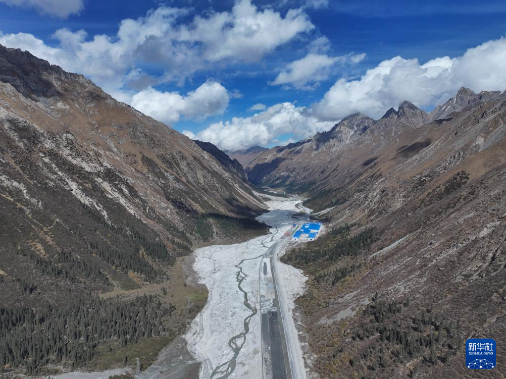 這是10月5日在新疆昭蘇縣拍攝的昭温公路西天山特長隧道進口端及附近施工現場(無人機照片)。該隧道為全線關鍵控制性工程,全長15.707千米,由北向南穿越天山山脈。