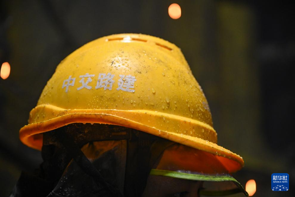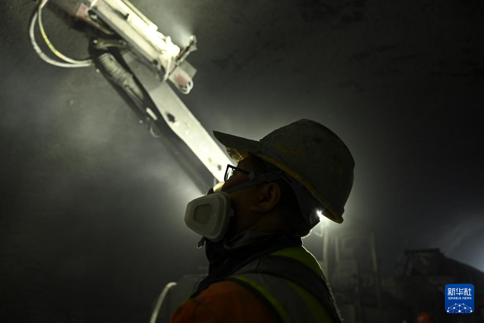來自甘肅的工人王更興在昭温公路西天山特長隧道左洞內施工(10月5日攝)。