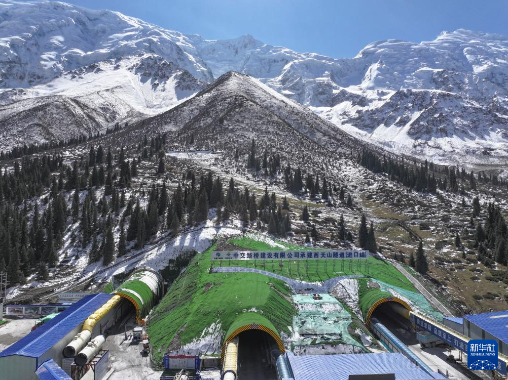 這是10月5日在新疆昭蘇縣拍攝的昭温公路西天山特長隧道進口端(無人機照片)。從左至右依次為平導洞、左洞、右洞。