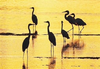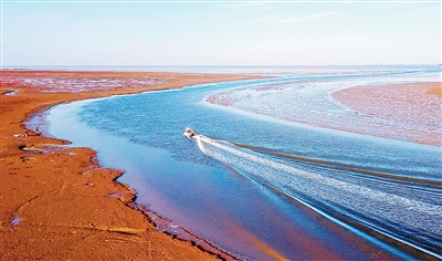 “十四五”時期,山東東營持續完善黃河保護機制,加強生態環境治理。圖為東營紅灘濕地旅遊區生態濕地。