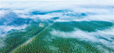 位於河北承德的塞罕壩機械林場雲霧繚繞,林海浩瀚。“十四五”時期,全國森林覆蓋率達25.09%,比2020年提高約2個百分點,我國成為增綠最多最快的國家。