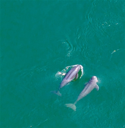 近年來,長江水質不斷提升,部分重點保護物種數量上升。圖為在湖北宜昌葛洲壩下游二江水域拍攝到的長江江豚。