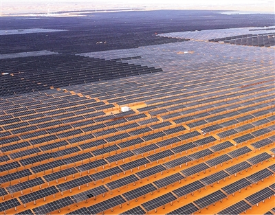 寧夏全力打好“三北”工程黃河“幾字彎”攻堅戰,截至今年5月底,已完成治理面積422萬畝。圖為寧夏中衞的騰格裏沙漠新能源基地。