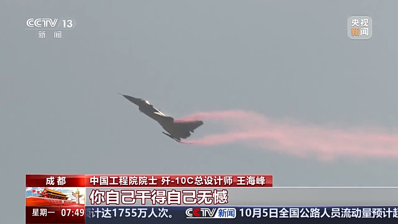*中國工程院院士 殲-10C總設計師 王海峯:*全世界航展上沒有一架單發飛機把這5個動作做全的,我們是全世界首次,就這一架飛機。