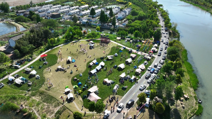 國慶假期,蟒蛇河畔露營帳篷點點,眾多市民自駕而來,在水清岸綠中享受閒暇,領略裏下河水鄉的獨特韻味。