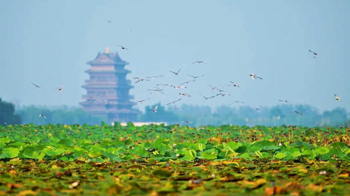 秋意漸濃,暑熱散盡,作為**蟒蛇河源頭的大縱湖,碧波盪漾、岸綠景明,成羣的飛鳥時而掠過湖面、時而棲落岸畔,處處躍動着生態修復帶來的鮮活氣息。