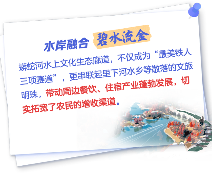 站在蟒蛇河的遊船上眺望,水波流轉處,大縱湖的飛鳥正掠過天際,涇口村的船隊已駛向深藍。這條母親河的變遷,恰似一堂流淌在城鄉肌理間的立體生態公開課——它以*“退漁還湖”的決斷講述敬畏,用“水岸融合”的智慧詮釋共生,更借“向海圖強”*的膽魄書寫未來。
