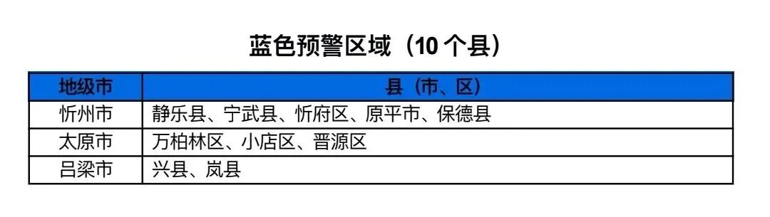 省自然資源廳、省氣象局聯合發佈地質災害氣象風險預警:2025年10月07日20時至10月08日20時, 預計我省太原市、陽泉市、長治市、晉中市、忻州市、臨汾市、呂梁市等7個市53個縣(市、區)地質災害發生風險較高(黃色預警);大同市、陽泉市、長治市、晉城市、朔州市、晉中市、運城市、忻州市、臨汾市等9個市51個縣(市、區)地質災害發生有一定風險(藍色預警)。請上述地區政府、部門和羣眾根據預警等級採取相應的防範措施。