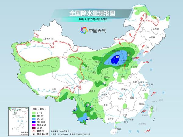 國慶中秋長假接近尾聲,假期返程最後一天和節後首個工作日天氣如何?冷空氣將影響北方帶來降温,氣温將大範圍創今年立秋以來新低,同時陝西、山西、北京、天津、河北等地將有一次明顯降雨過程,局地暴雨,強度或為同期少見。而南方大部熱度不減,多地將出現高温。